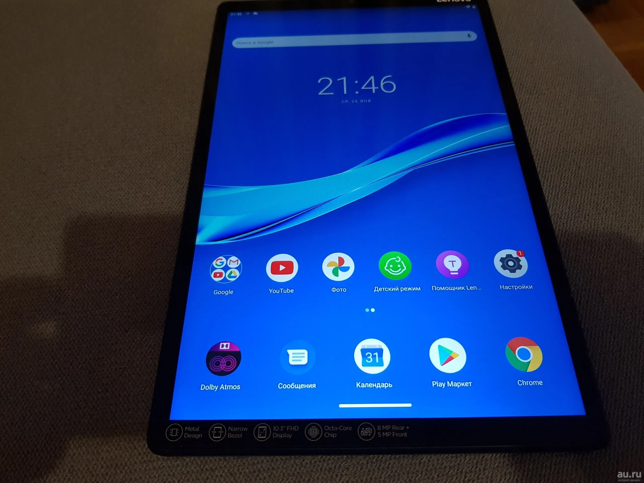 10.3" Планшет Lenovo Tab M10 Plus TB-X606F 128Gb Wifi Grey (1920x1200, IPS, 8х2.3 ГГц, 4 ГБ, BT, 5000 мА*ч, Android 10]