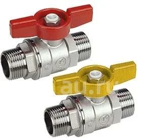 Кран шаровой, резьба наружная/наружная, стандартный проход, хромированный, ручка - бабочка красная или желтая.