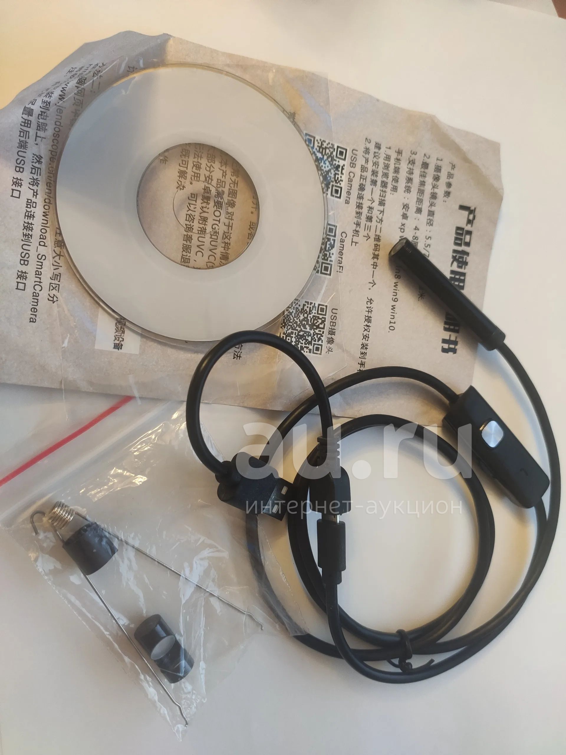 эндоскоп, microUSB, длина 1 м, к комплекте зеркало и пара крючков, переходник на USB-A