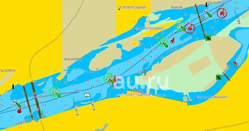 Garmin Подробная навигационная карта Красноярского края с фарватером знаками створами