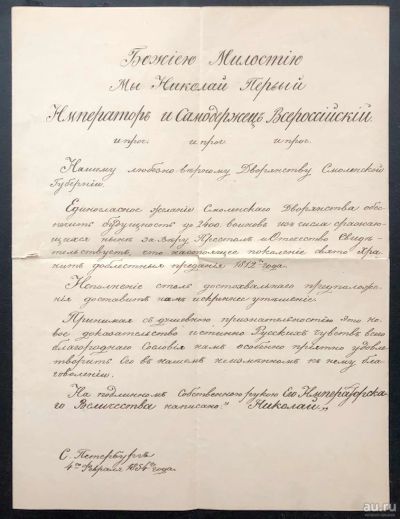 В правом верхнем углу рельефный штамп с двуглавым орлом .
