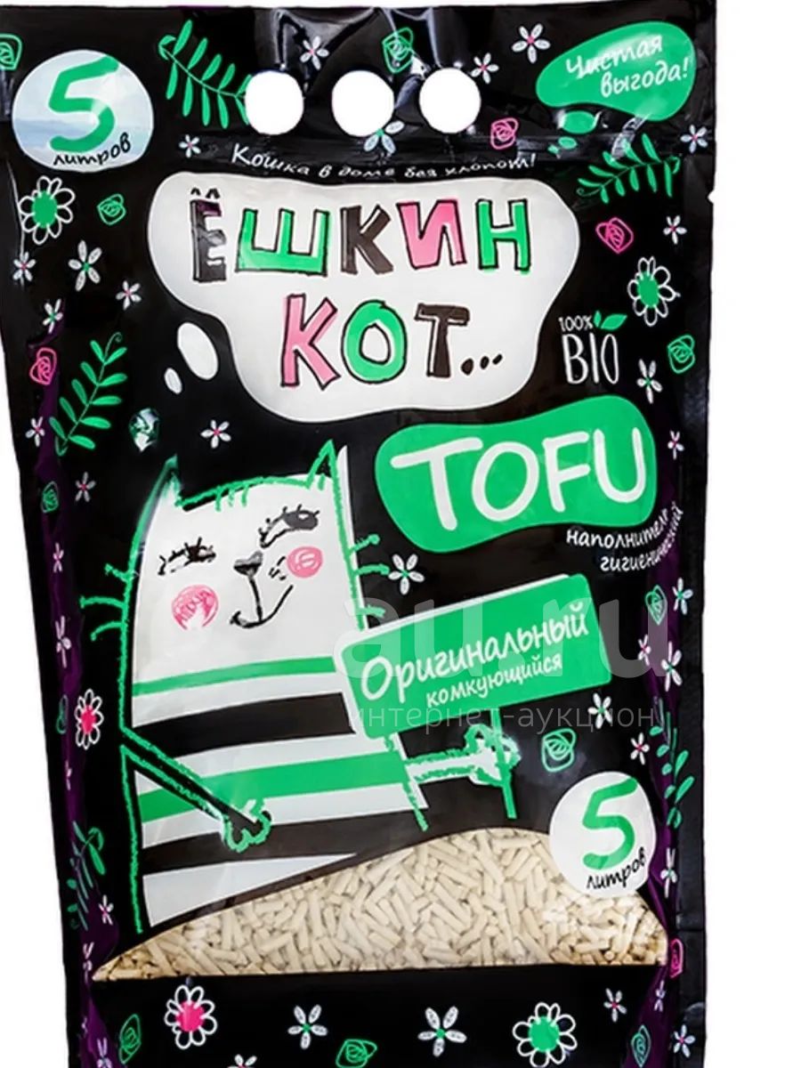 Комкующийся наполнитель для кошачьего туалета ТОФУ алЁшкин кот (5 литров) - изготовлен из растительного сырья, обладает высокими абсорбирующими свойствами, прекрасно впитывает запахи и отлично комкуется.