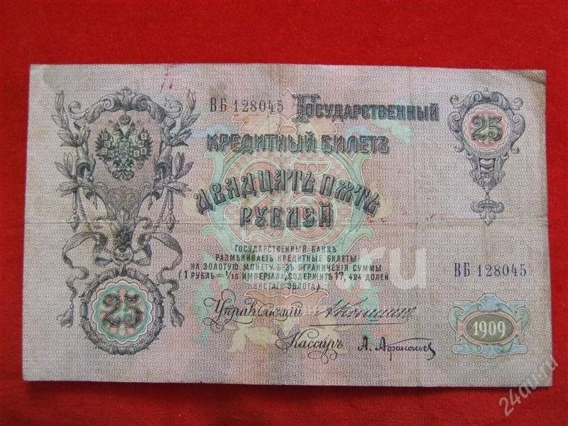 Банкнота 25 рублей 1909года. Коншин -Редкая.... . ( боны с рубля !!!...