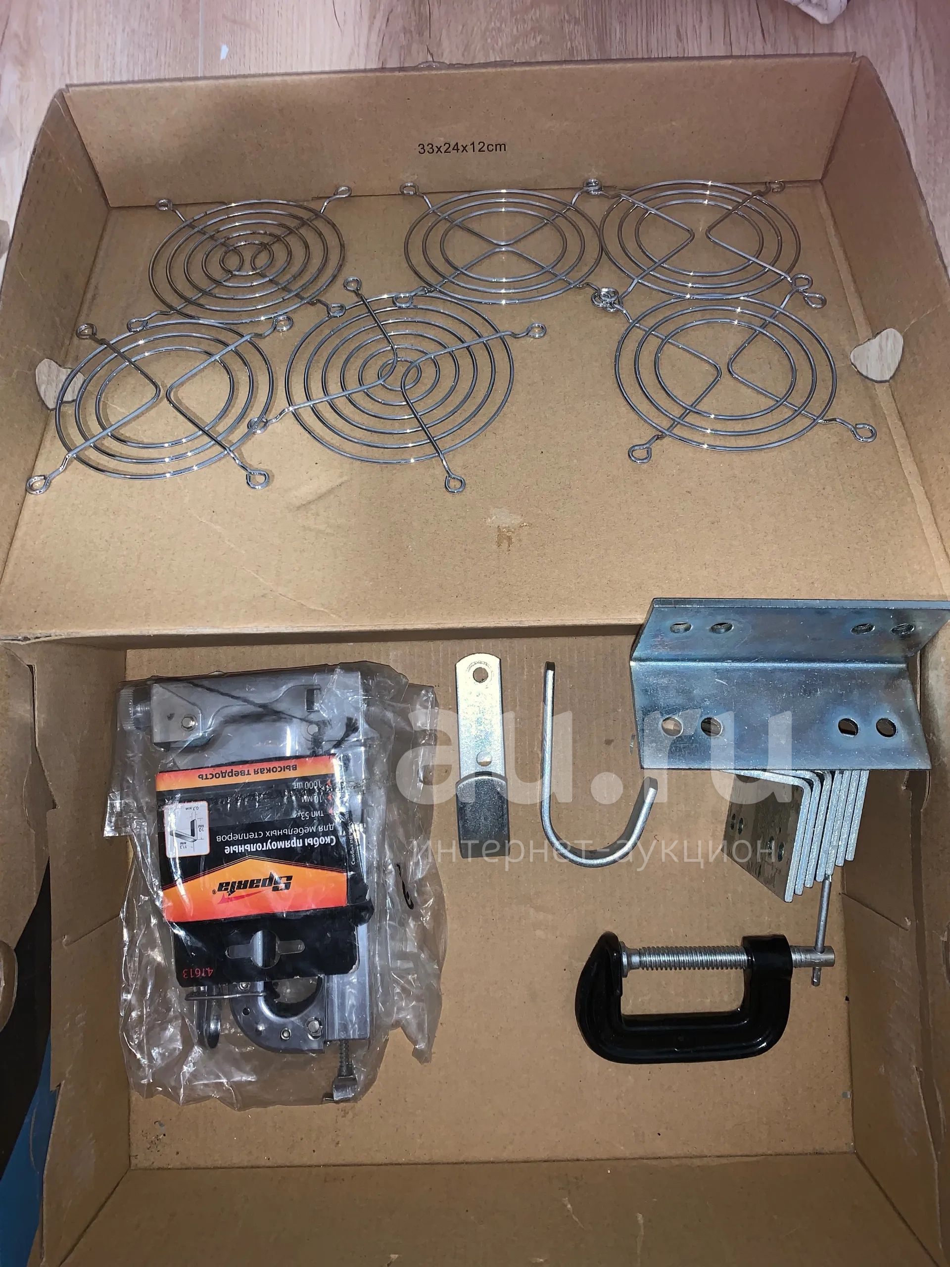 Уголки толстые прочные, уголки со скругление использовались под брусья, 120кг держит, может больше. Степлер рабочий, но есть нюанс, в целом ватман на мольберты крепить хватало. Струбцина рабочая.Решетки для кулеров ПК остались после подделок.