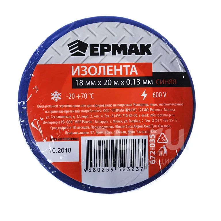 Изолента Премиум синяя 18мм*20 метров