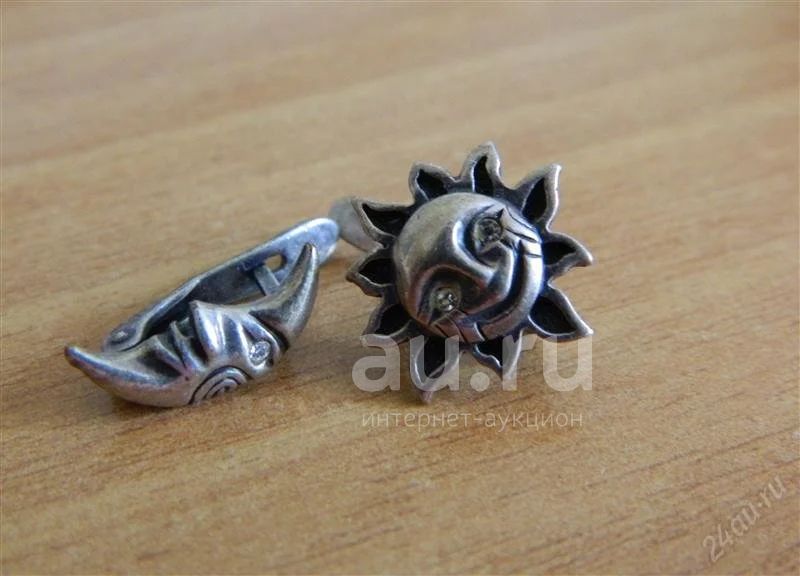 Серьги "луна и солнышко с кристаллом сваровски. Серебро черненное 925.Снизила цену.