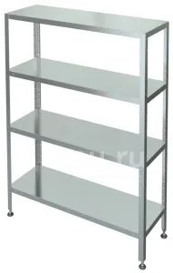 Полки стеллажей изготовлены из нержавейки t=0,5 AISI 430, каркас оцинкованный, стойки-уголок Стеллаж предназначен для хранения кухонного инвентаря, посуды, продуктов на предприятиях общественного питания, магазинах, заготовительных предприятиях, холодных, горячих цехах. Изделия сборно-разборные и поставляются в двух упаковках.
