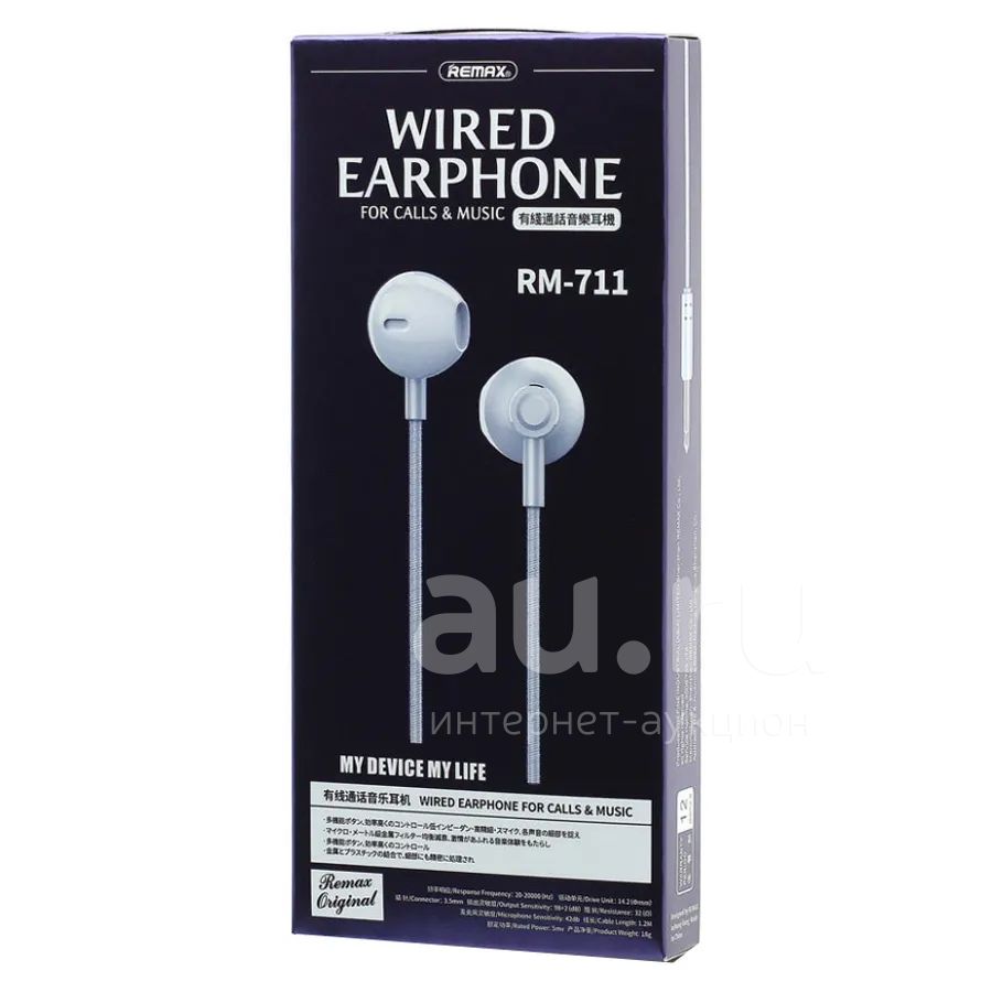 350руб.Наушники проводные вакуумные Lightning (микрофон) Remax RM-510i - Син...