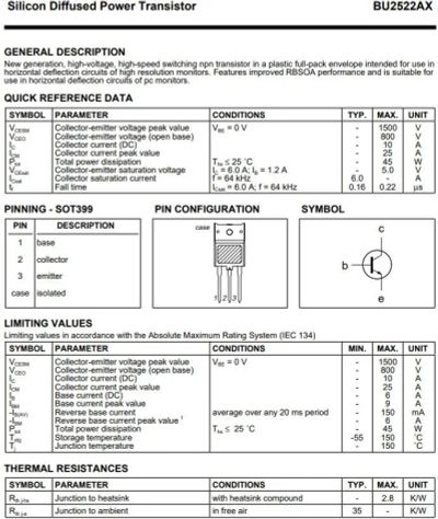 транзистор BJT BU4522AX 800V 10А NPN SOT399 45W