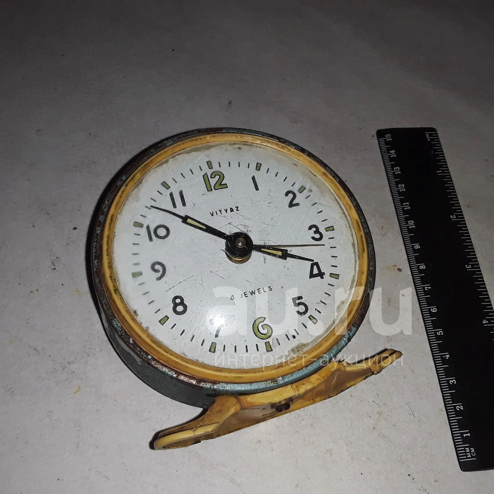 старый ржавый часы будильник СССР , даже исправен . витязь vityaz 4 камня экспортный. с фосфором