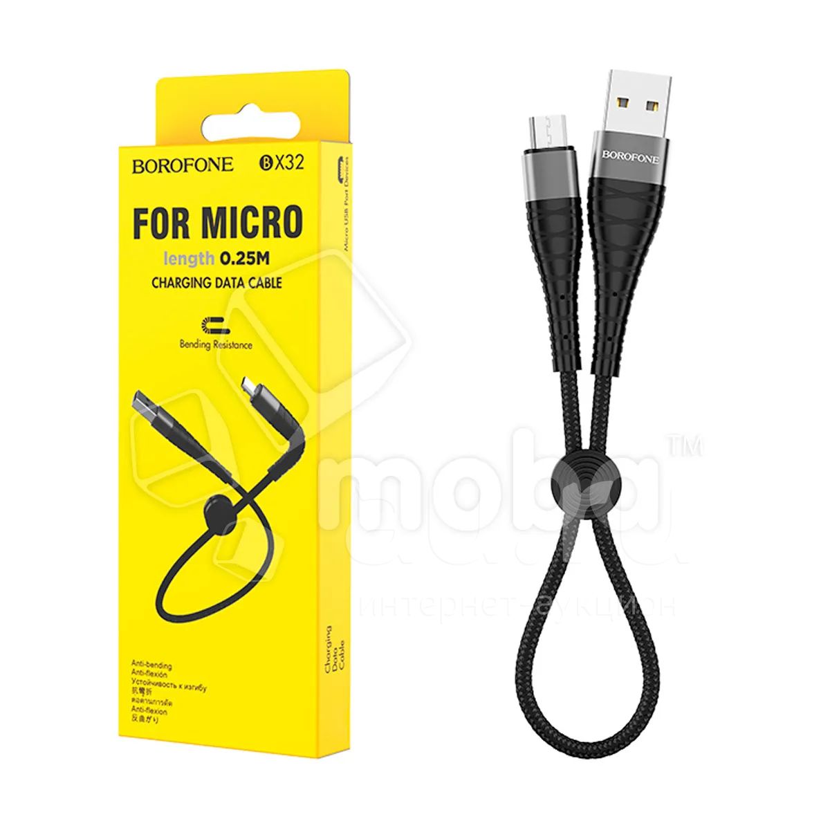 Кабель USB - MicroUSB Borofone BX32 (2.4A, оплетка нейлон, 0.25 м) Черный