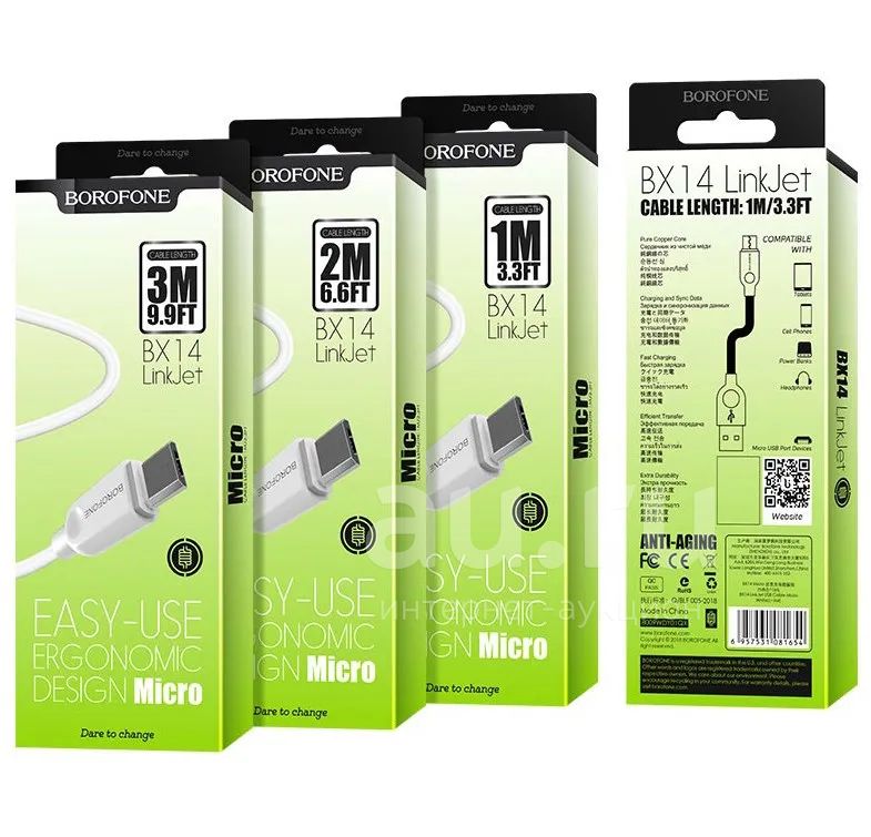 Кабель micro USB Borofone BX14 2 метра в коробке 2,4А