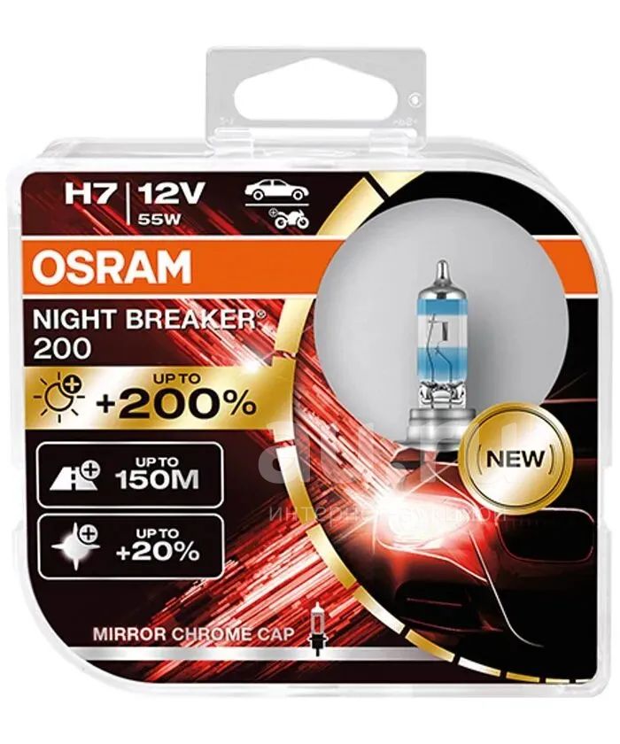 64210NB200-HCB Галогенная лампа Osram H7 (55W 12V) Night Breaker +200% (Duobox) 2шт+ QR код подлинности