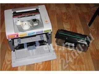 Samsung ML-2570, НЕ рабочий, сгорел чип на плате формирования, оторвались контакты от моторчика, который крутит валики. Печка, барабаны - всё целое и рабочее. Принтеру было около года. В комплекте практически новый оригинальный картридж (купил и не успел использовать полностью), не заправлялся.