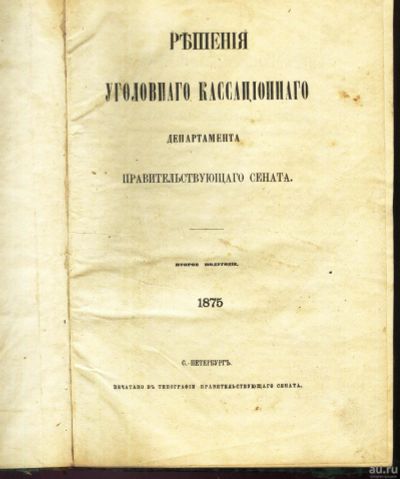 4 500руб.Решения уголовного кассационного департамента правительствующего сената , за второе полугодие 1875 года. * Описание уголовных дел рассмотренных в судах Империи и решения на них кассационного суда .*История жизни России .*