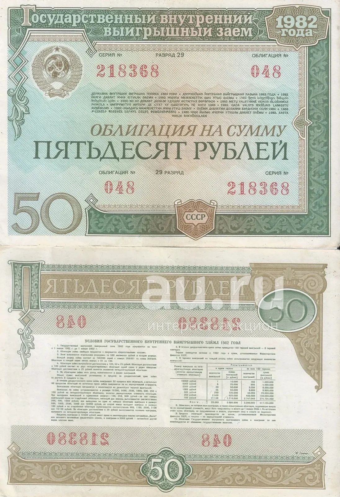 50 рублей 1982 год. Облигация государственного внутреннего займа СССР. С рубля ...