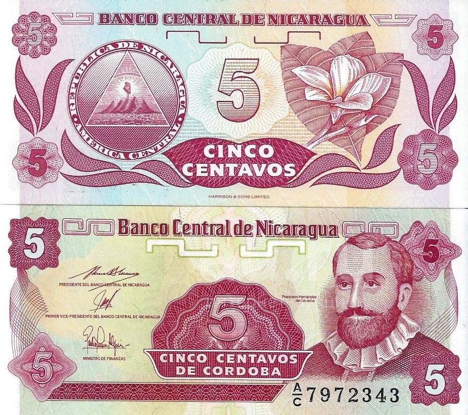 5 сентаво 1956 - 2001год . Никарагуа . Пресс