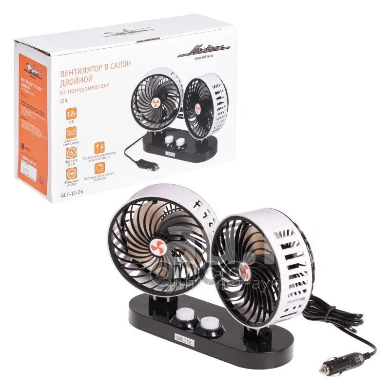 Вентилятор AIRLINE 15 см на присоске пластик 12V ДВОЙНОЙ
