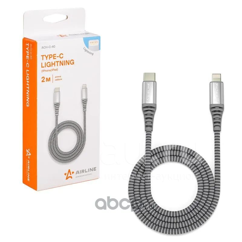 Кабель Type-C - Lightning (Iphone/IPad) поддержка PD 2м, серый нейлоновый