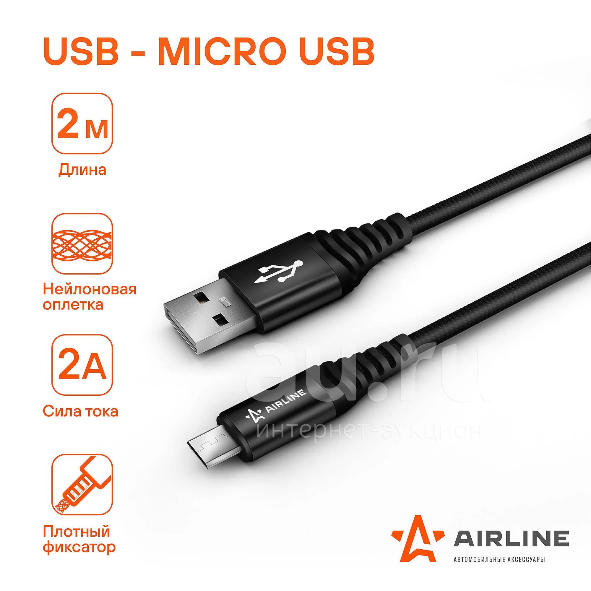 Кабель USB - micro USB 2м, черный нейлоновый