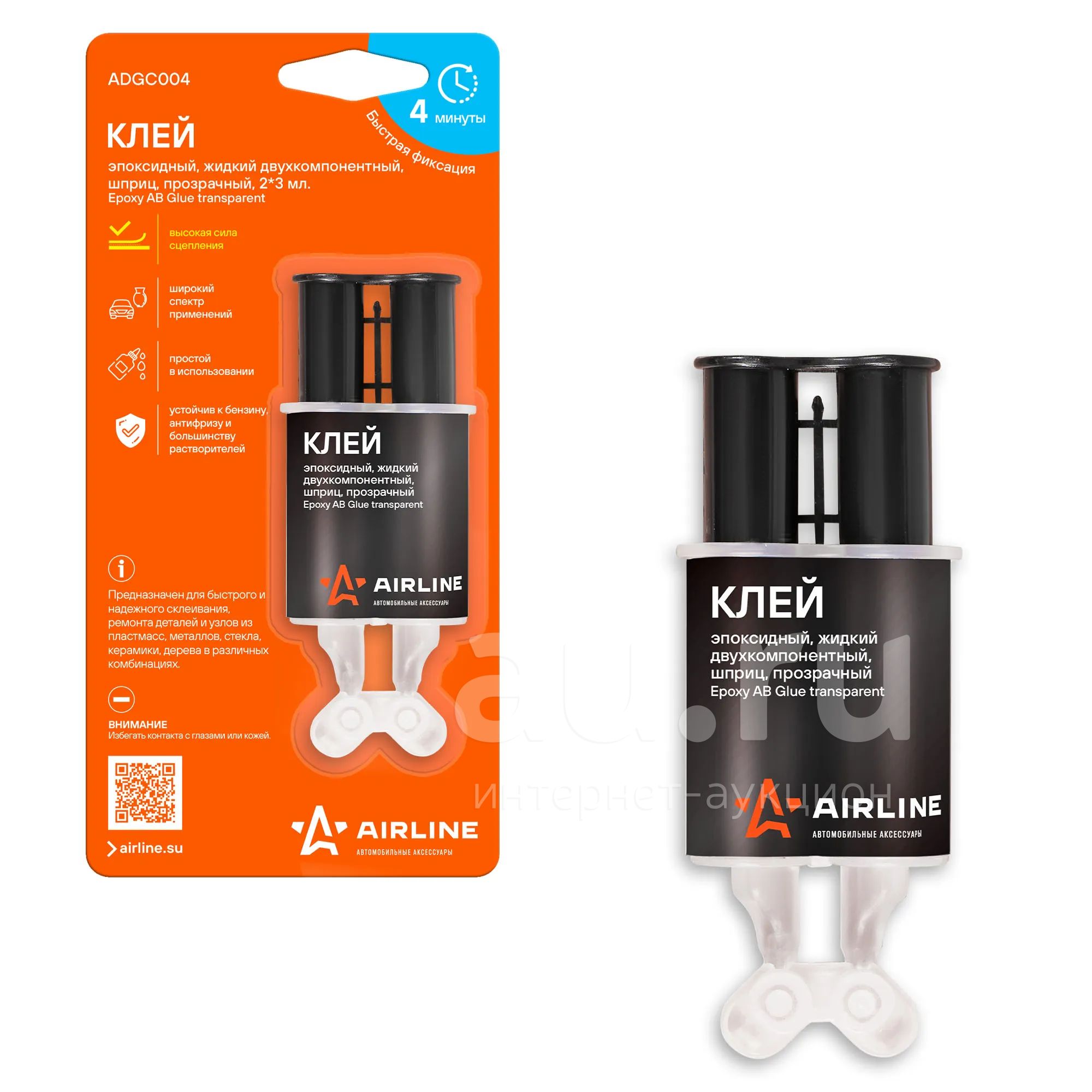 Клей эпоксидный, жидкий двухкомпонентный,шприц, прозрачный, 2*3 мл.
