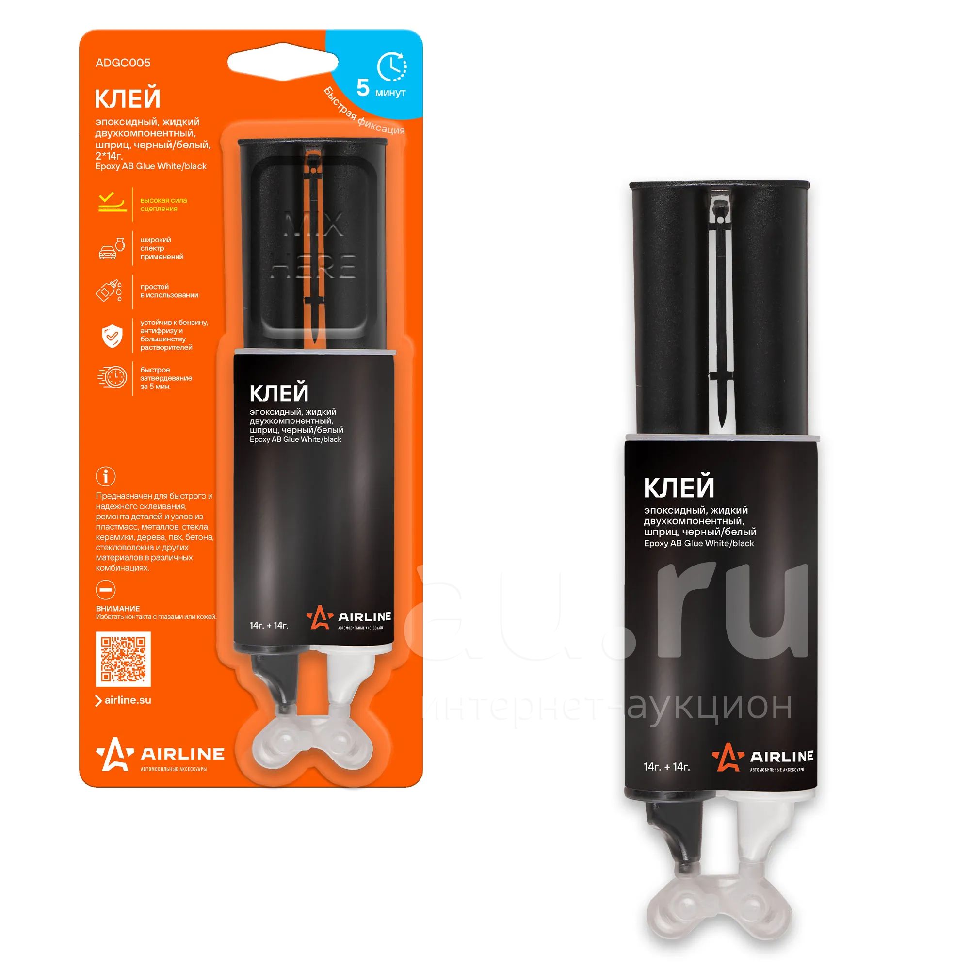 Клей эпоксидный, жидкий двухкомпонентный, шприц, черный/белый, 2*14 г.