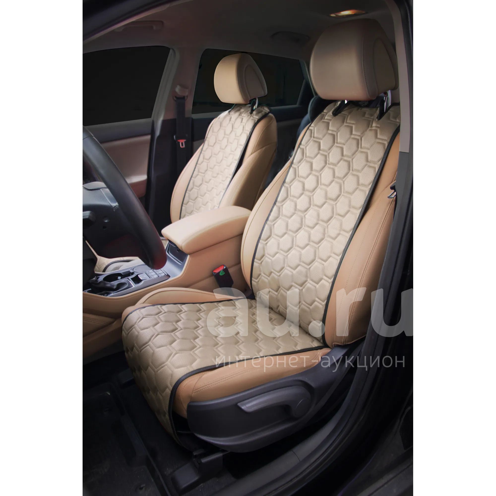 Накидки Алькантара , передние (2 шт.), экокожа с перфорацией, бежевые