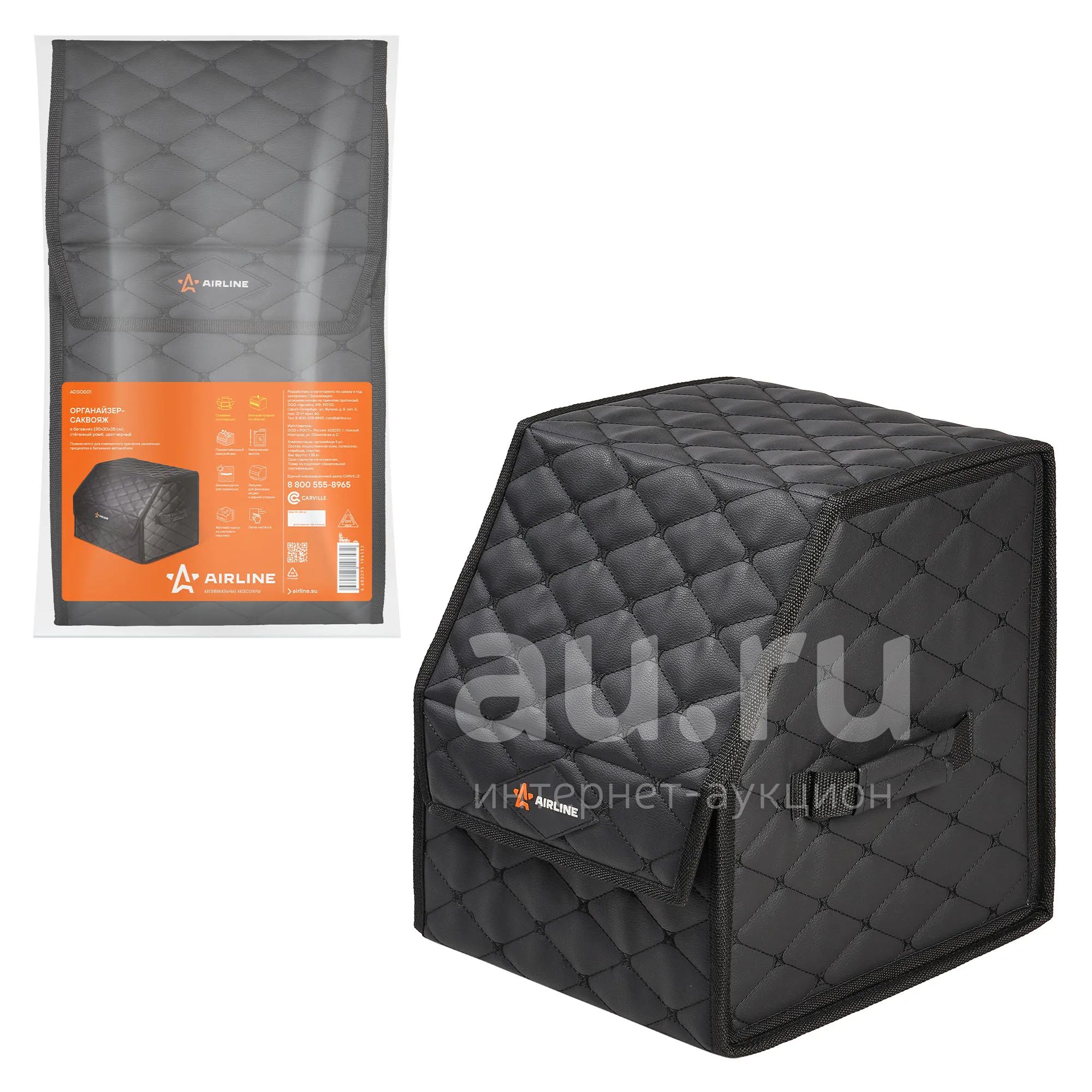Органайзер-саквояж в багажник (30*30*35 см), стёганный ромб, цвет черный