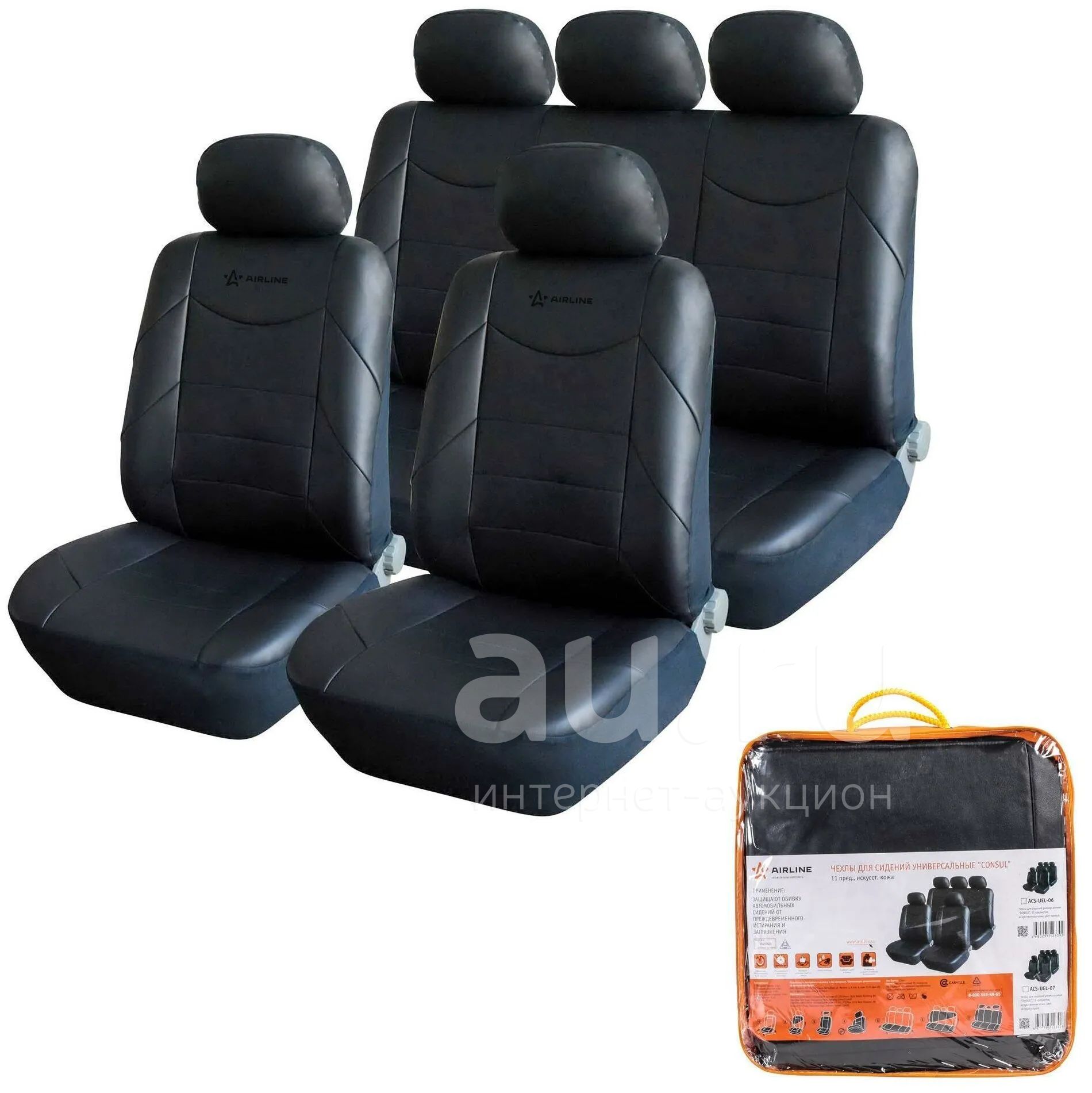 Чехлы для сидений универсальные CONSUL, 11 пред, искусст.кожа, черн.