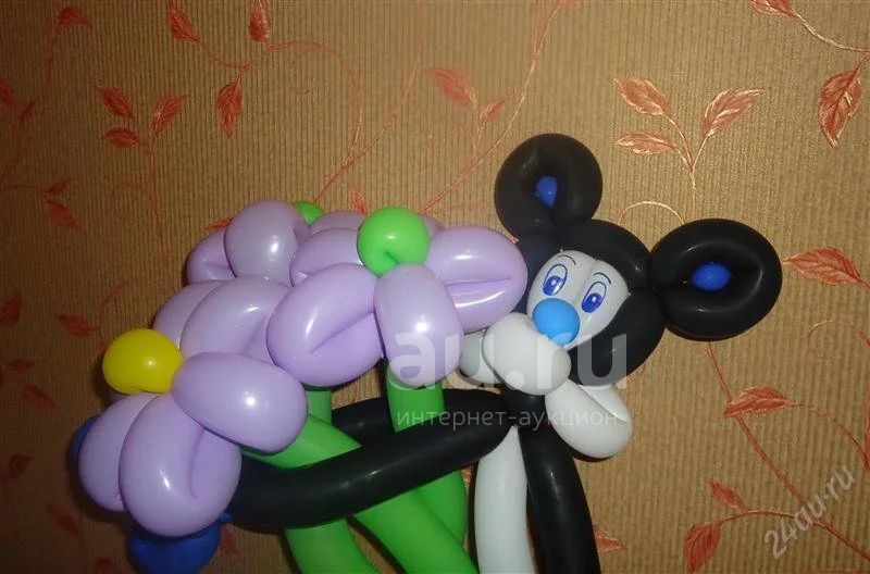 Букет цветов с Микки Маусом из воздушных шаров.