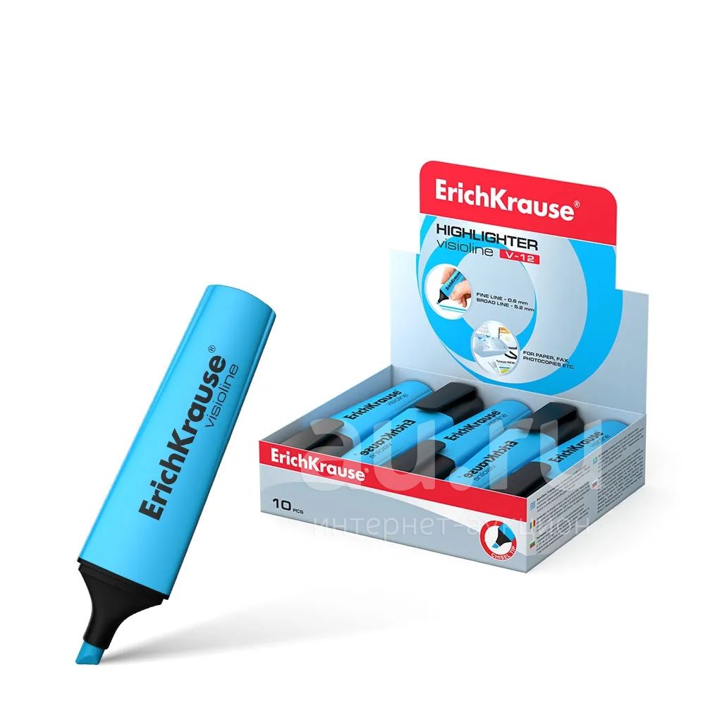 Производитель: Erich Krause; Тип товара: текстовыделитель; Ширина линии письма: 0.6-5.2 мм; Форма наконечника: скошенный; Количество цветов: 1; Цвет чернил: голубой; Основа: водная; Материал корпуса: пластик; Диаметр корпуса: 27 мм; Наличие клипа: да; Назначение: для выделения текста на бумаге; Срок годности: 60 мес.; Страна-производитель: Малайзия