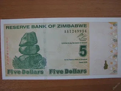 Зимбабве 5 долларов 2009 года. Идеал!
