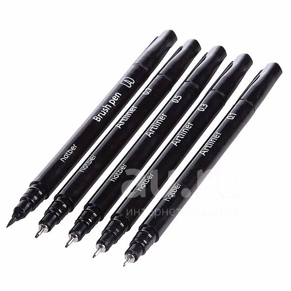 Набор чёрных линеров Hatber Noir 5шт. 01./0.3/0.5/0.7mm/Brush (AM 070955)