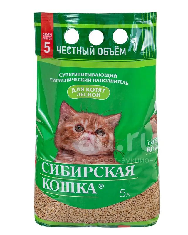 Сибирская кошка супервпитывающий древесный наполнитель «Лесной для котят» 5л