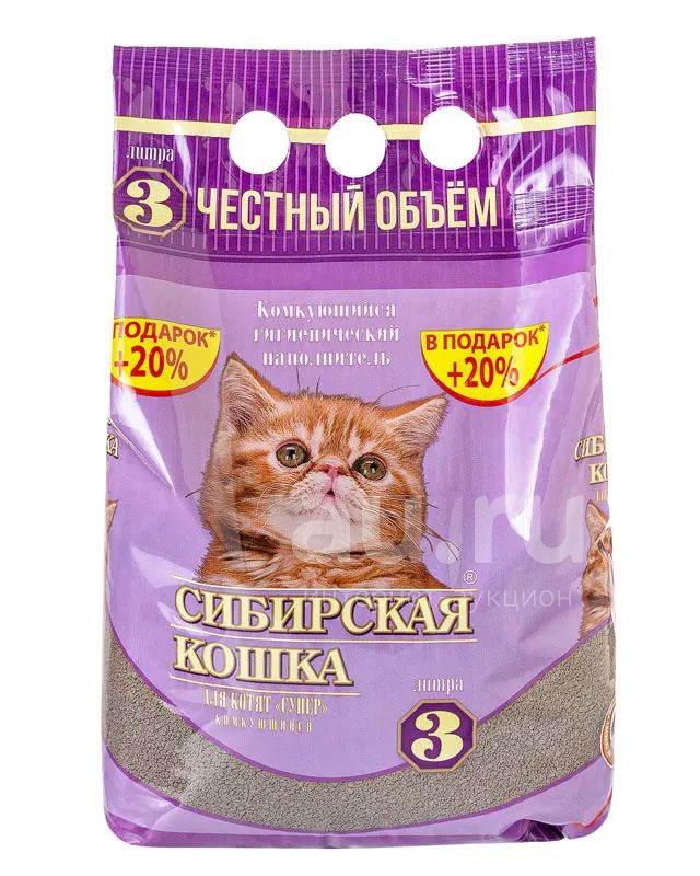 Наполнитель Сибирская кошка комкующийся, Супер для котят 3л