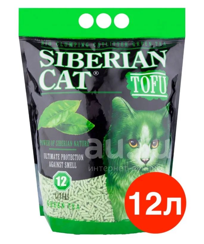 Наполнитель комкующийся для кошек Сибирская Кошка Тофу с ароматом Зеленый чай 12л