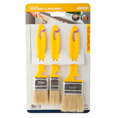 Кисть флейцевая для работ с эмалями н-р 3шт Акор /98353/ /98353/