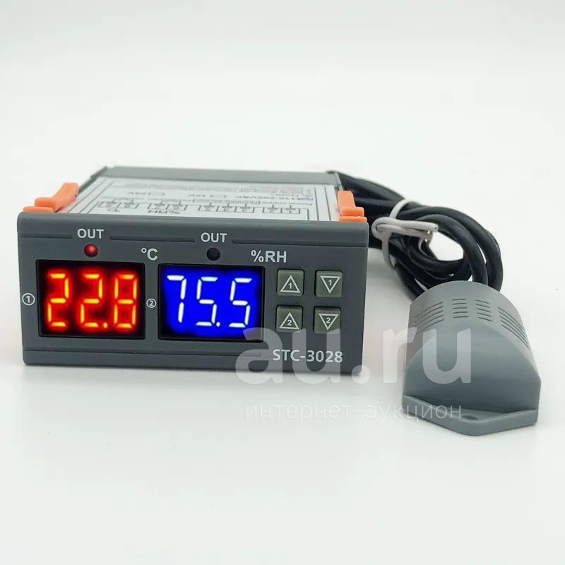 Терморегулятор с датчиком влажности цифровой, 10А/250В, -50...120°C, питание AC220в, STC-3028