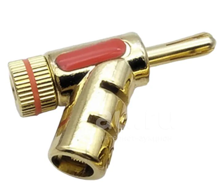 Разъем Banana, штекер, кабельный, цанговый, угловой, красный