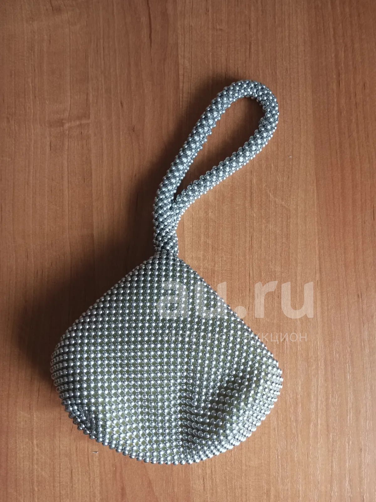 Высота по центру около 14 см, длина около 15 см. Внутри подклад. Сумка красивая, но уже с дефектами. Их видно на фото. Где-то в одном месте отходила бусина, но в основном дело все в районе замка.