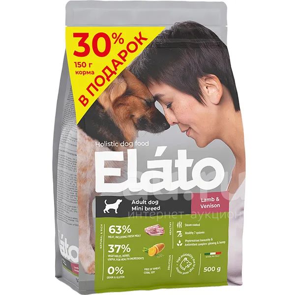 Elato (Элато) Holistic корм для взрослых собак мелких пород с ягненком и олениной, АКЦИЯ! +30% в подарок. 650г