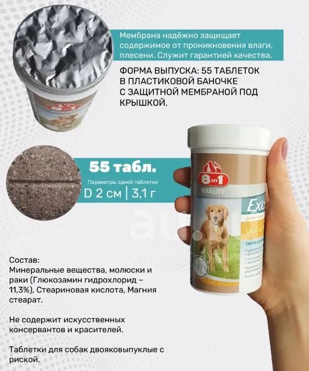 8в1 Эксель Глюкозамин (8in1 Excel Glucosamine) для собак, 55 таб (Внимательно читаем описание лота)
