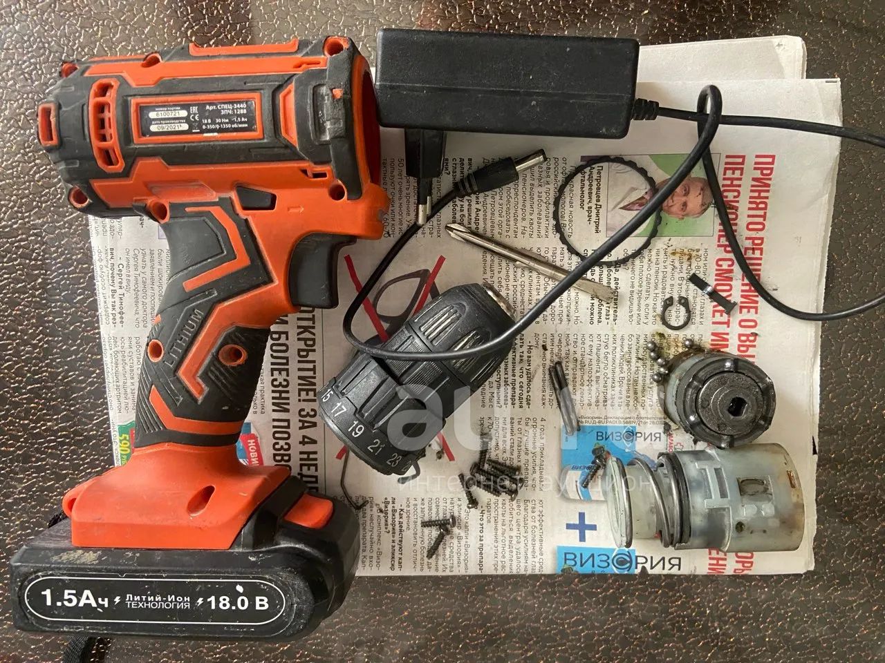 Дрель аккумуляторная СПЕЦ ПРОМО БДА-18-П на запчасти