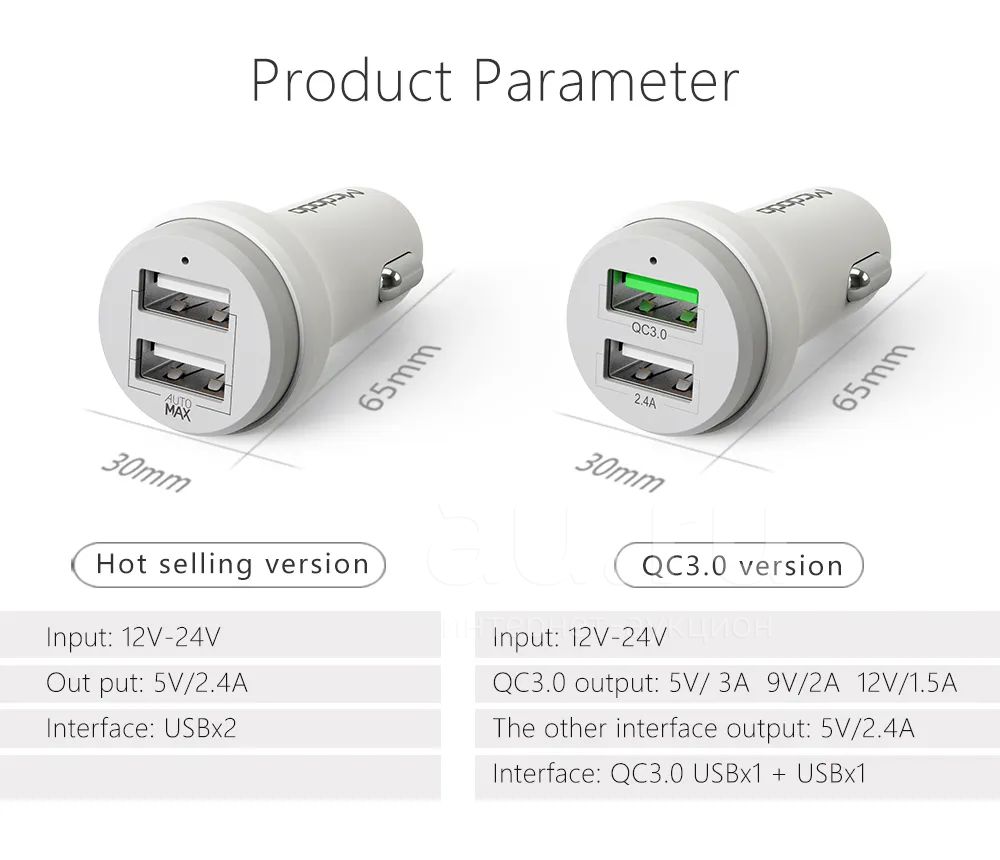 Зарядное автомобильное Usb A + Usb A + Usb C (100W, QC 3.0)