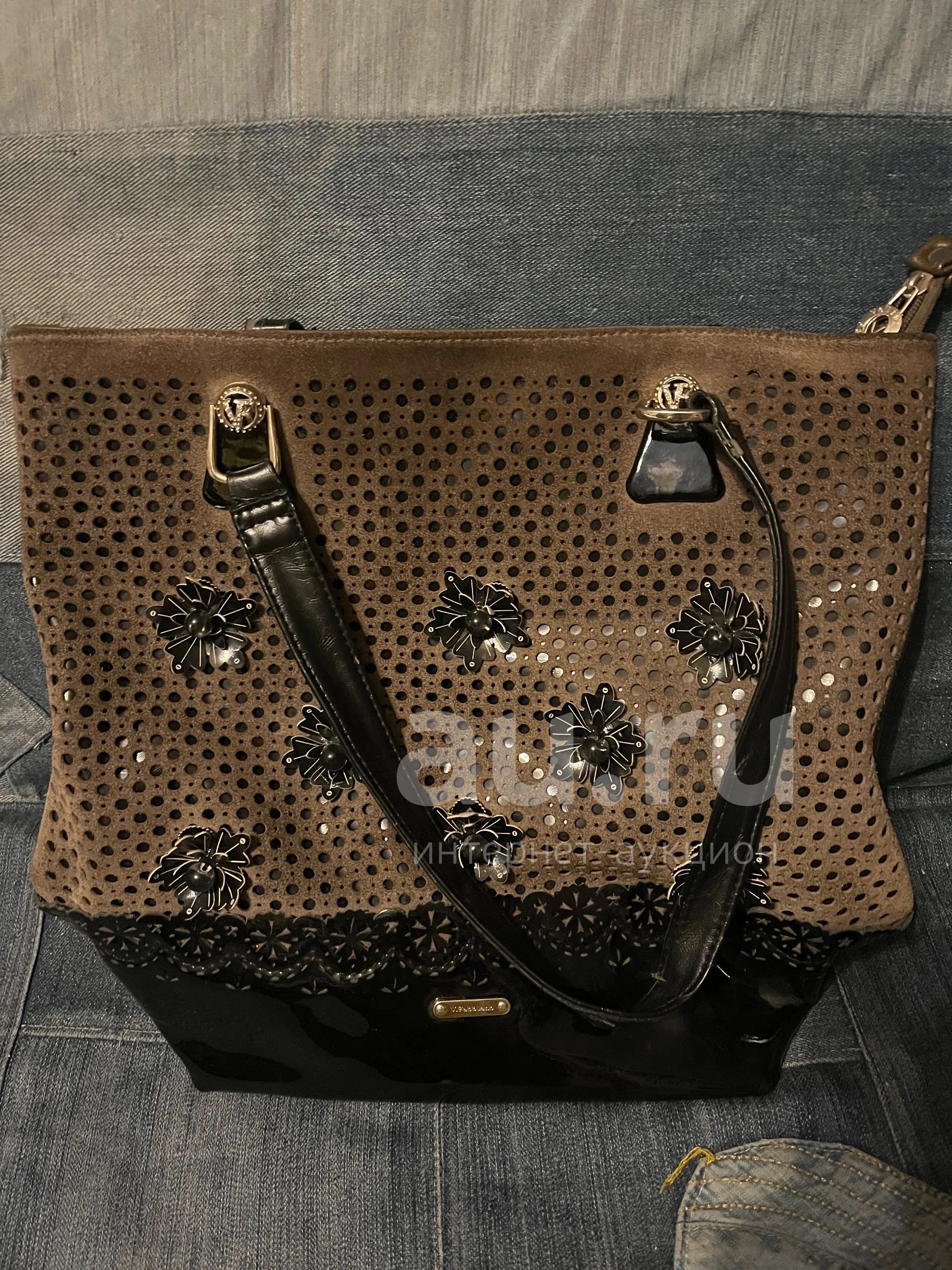 Кожа натуральная везде кроме цветочков… фабричный китайский аналог известного бренда.. единственный косяк на третьем фото… так как лот с рубля, сама убирать его не буду))) снизу углы целые, подклад целый, не затянут, не закатан… спереди перфорированная замша