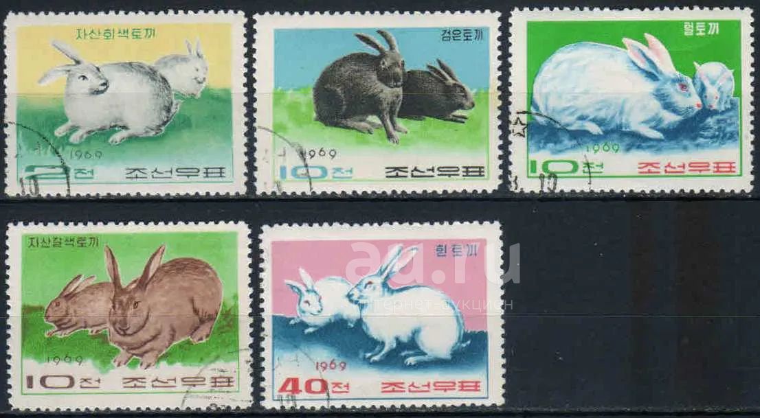 1969. Северная Корея. Кролики. Полная серия. № 946‑950