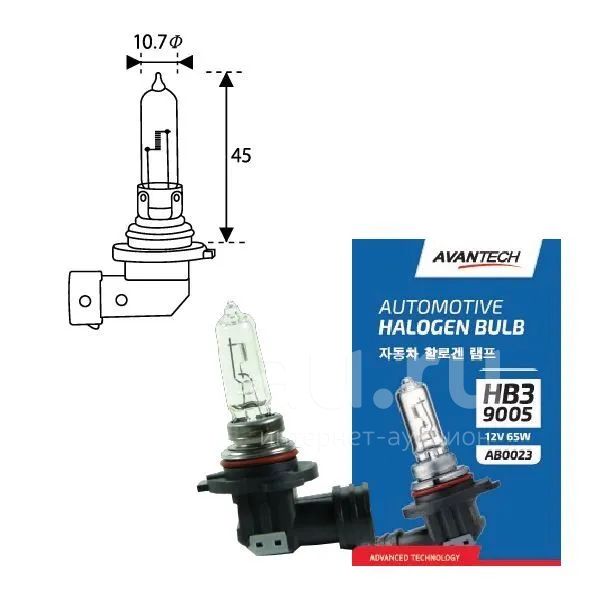 Лампа головного света hb3 (9005) avantech ab0023