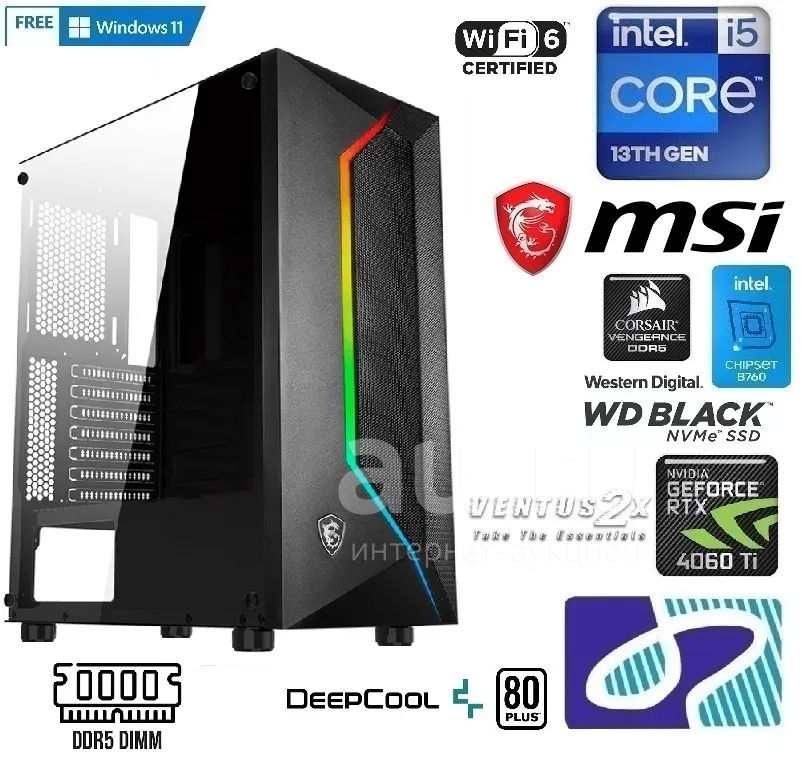Новый игровой системный блок на базе Intel® Core™ i5 Raptor Lake(Intel® Core™ i5 13400F Up то 4.6 Ггц/32 GB ram DDR5 6000Mhz/Nvidia RTX 4060TI 8Gb GDDR6/SSD 1000gb NVME PCIE4/700W 80+/Wifi+BT)+Windows 11 Pro, Гарантия!