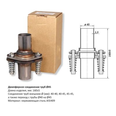 Материал: Трубы-нержавеющая сталь марки AISI 409, фланец(01)-нержавеющая сталь марки AISI 409, фланец(02)-сталь Ст3 ГОСТ14637-89, прессованное графитовое кольцо на основе из металлической жаростойкой проволоки, пружина коническая оцинкованная, болт М10х70 оцинкованный, гайка М10х6Н ГОСТ 5915-70 оцинкованная, шайба А.10.37 ГОСТ 11371-78 М10х6Н ГОСТ 5915-70