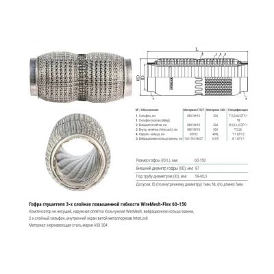 6 200руб.Гофра глушителя 55мм повышенной гибкости WireMesh-Flex (Гофра глушите...